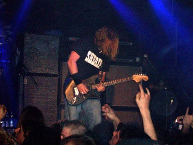 Koncert byl na poslední chvíli přeložen z Rock Café do prostor alternativního klubu Roxy. DOWN zkrátka nechtěli hrát potichu, a tak trochu hodili rukavici krajanům THE DILLINGER ESCAPE PLAN. Do centra veškerého dění jsem se dostal cca po šesté hodině. Před vstupem se už mačkali netrpěliví fans, jež zatarasili celou ulici a někteří kolemjdoucí tuto skutečnost těžce nesli. Nicméně našli se i tací (Francouzi), kteří po zjištění všech informací okamžitě zabrzdili a postavili se do fronty. To víte, DOWN v centru Prahy! Program celého večera již dopředu sliboval velmi originální show. Hvězdy večera si nepřivezli žádnou předkapelu a už před samotným koncertem slibovali příznivcům večer plný „rock´n´rollu“. Úderem sedmé hodiny začalo první hudební menu. Skládalo se z promítání starých rock-metalových klipů (kapely jako AC-DC, BLACK SABBATH, SCORPIONS + plus další americké, méně známé spolky) a také video prostřihů, které obsahovaly ukázky ze života amerických turistů, navštěvujících starý kontinent. V hlavních rolích samozřejmě členové DOWN – spící, pařící, zpívající, ničící hotelový majetek. Během klipové prezentace se prostory klubu pomalu zaplnily a něco málo před osmou stála hlava na hlavě.