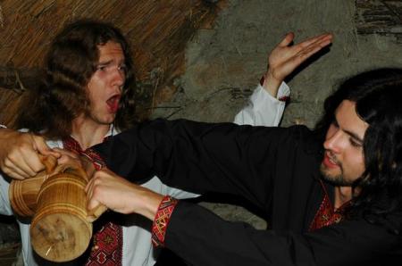 Tak to je supr otázka! Bohužel, blbá odpověď. Nic takovýho neděláme, ale já bych hrozně moc chtěl. Jedině občas s Ingvarrem zajdeme na nějaký slovanský obřad, nebo se zajde do nádherného údolí na Sarapisovu chatu, kde není elektrika, což je naprosto vynikající a tam se zpijeme jako šakali, čímž své předky zajisté dokonale napodobujeme :). Viděl jsem film „The Misanthrope” od Nocturna Culta z DARKTHRONE a tam přesně takové seance, na které se ptáš, prováděli. S borcema z jiné kapely vyšli do hor, tam si udělali oheň, popili, povykládali a šli dál. Takový život je super! Naši prarodiče nám pomáhají hlavně těmi vesnickými zvyky a způsobem života. Nic se od pradávna nezměnilo, jenom technika. Ale jinak o naších aktivitách nevědí! Většinou jsou to zapřísáhlí křesťané, takže ti by nás hnali jak stádo vepřů :).